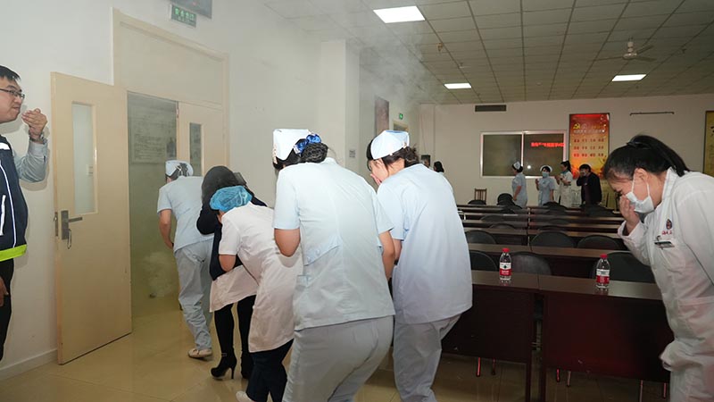 培训会后,参会人员还进行了一场“真刀实枪”的火灾逃生技能演练。在冒着浓烟的走廊模拟感受火灾发生时的现场状态,大家捂住口鼻、弯腰俯身,按照李教官提醒,快速通过了烟雾区,顺利地从出口“逃生”,进一步提高了员工的消防应急处置能力。